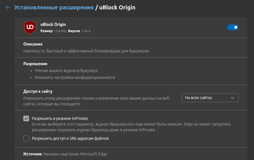 >>3643674 > WAIT... OH, SHI... Там же только dev build остался, релиз снесли. Тогда мне нет нужды чекать что там в репозитории горхилла на хостинге от разработчиков Edge и ручками обновлять uBO, распаковывая zip. Смотри пикрилами не подавись. > И самое главное, что у меня интегрированное в ОС решение, а не сторонняя васянка. А ещё и кулак Александра Наденьгондонского интегрирован тебе у сраку, не только прогрессивное решение в ОС. Одни плюсы!