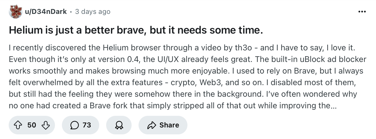 > НОРМАЛЬНЫЕ браузеры > Brave Ахахаха. Что там ещё из коробки у «нормальных браузеров»? Отключенный майнер? Рефки на криптобиржи? Спонсорские ноутбуки из китаеподвала?