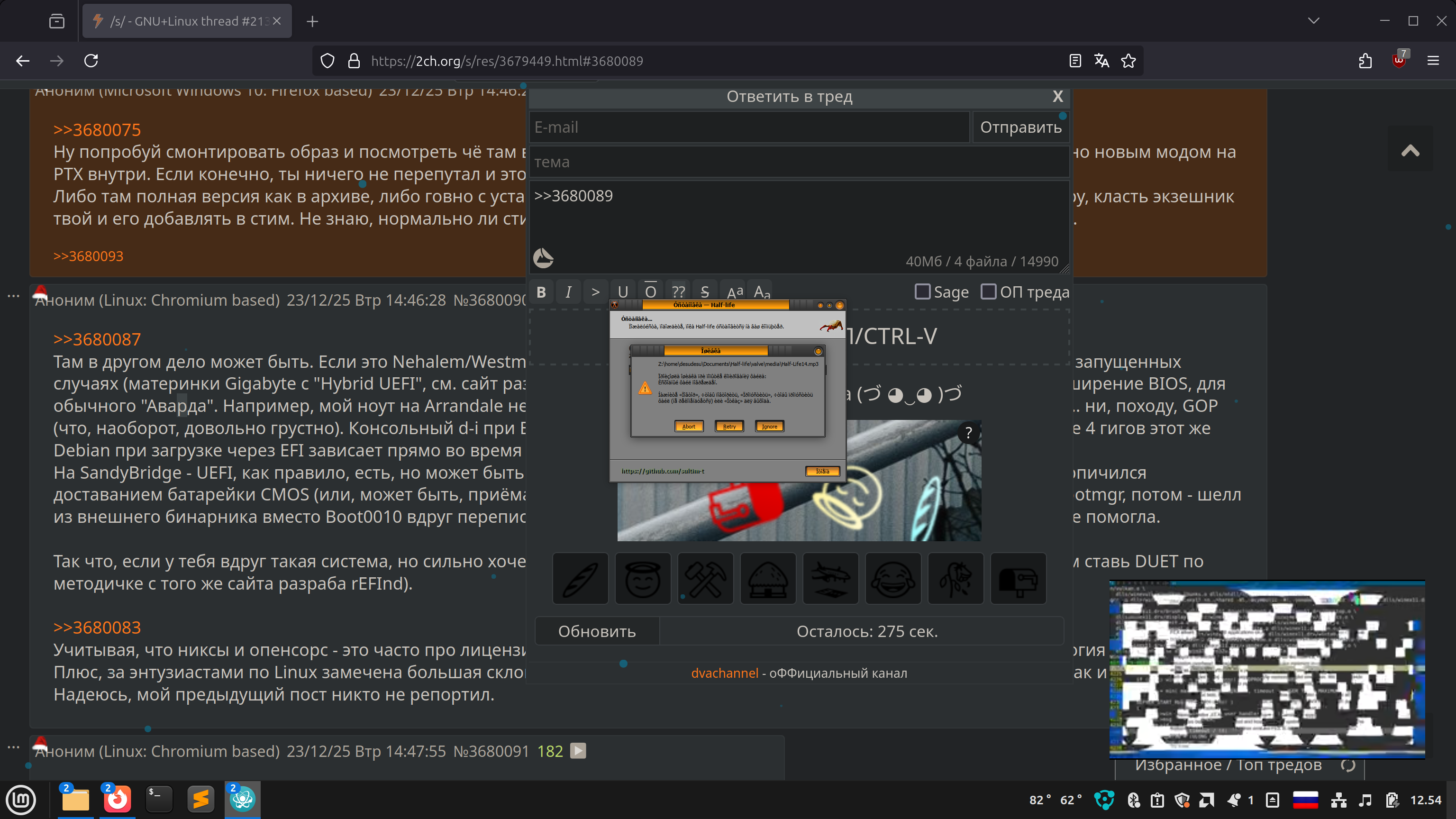 >>3680026 Привет, новенький! Чтобы стать полноправным участником сообщества тебе нужно нарисовать пингвина на ягодице и скинуть фото на почту torvalds@linuxfoundation.org! Удачи с установкой!
