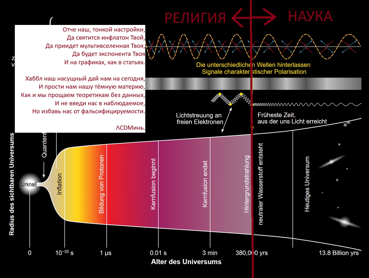 5. ❌ А может, Вселенная просто старая? Все «проблемы» инфляции — горизонта, плоскости, монополей — возникают только если ты предполагаешь, что Вселенная в момент рекомбинации была молодой.