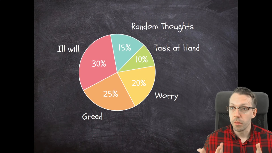 Жадность - значит хотеть чего-то больше. Ненависть - значит хотеть чего-то меньше. Отвлечения - значит мы хотим отвелчь себя или чувствовать что-то другое.