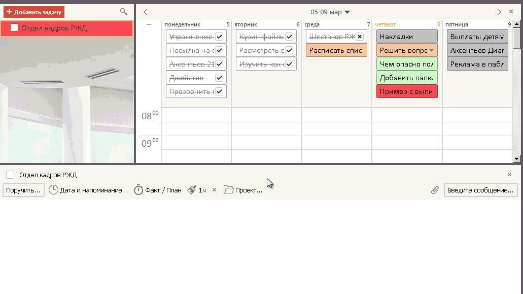 Буду описывать второй. Все задачи которые приходят в голову должны сокращаться до 3х слов, я сокращаю до одного. И должны расписываться на вечерней подготовке в Leader Taske. Далее идет планирование как на гифке и выписывается это добро на стикер, сокращенно но так что бы можно было запомнить.