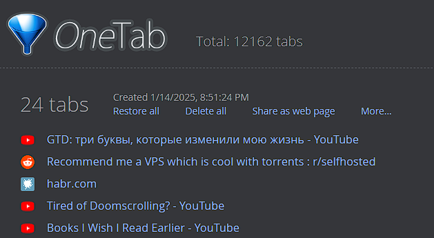 Как перестать заниматься интернет-накопительством? Ссылки, видосы, записи, картинки, порнуха - все складируется, откладывается на потом и хуй когда смотрится повторно. Изобилие контента реально сводит с ума.