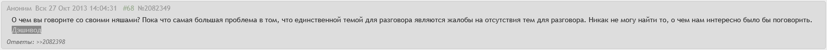 Кстати, сейчас понял, что я, вообще-то говоря, дурачок. Сам же хотел няшу-стесняшу и удивлялся, а чего это она не отвечает мне такое длительное время. Ну, например, потому, что она стесняется, дурашка? Так что теперь будет проще. Даже и отписаться как-то по такому поводу захотел, и плевать, что вроде как уходил навсегда. В идеальном мире ушёл бы, но мы не в идеальном мире.