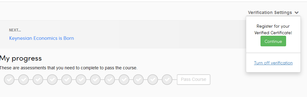 Ну там такой сертификат, просто обосраться и не жить. В принципе не особо он и нужен, тем более за 49$. Но без верификации я даже тест не могу пройти и соответственно продвинуться дальше первой лекции.