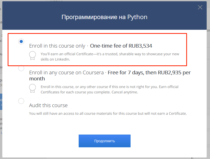 >>56206 Написано же one-time fee - платишь только за этот курс. Если нормально заканчиваешь, то тебе дают электронный сертификат, который можешь разместить в запрещенной в России соцсети linkedin. Подписка - это второй пункт. >потом навсегда имеешь доступ ко всем материалам курса? Ты даже на аудите (третий бесплатный пункт) имеешь доступ ко всем материалам, кроме квизов, тестов и эссе. >если второе, то как быть с сессиями - с проверками заданий и прочим интерактивом? Если заплатишь, то все будет. Но зачем? К тому же там не всегда квизы блокируют для тех, кто бесплатно пользуется.