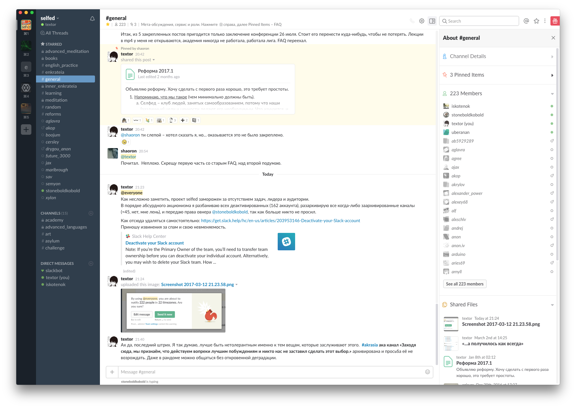 Конференция selfed.slack.com находится в анабиозе, по вопросам вступления писать lucid.enkrateia@gmail.com