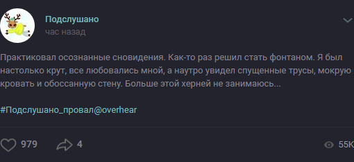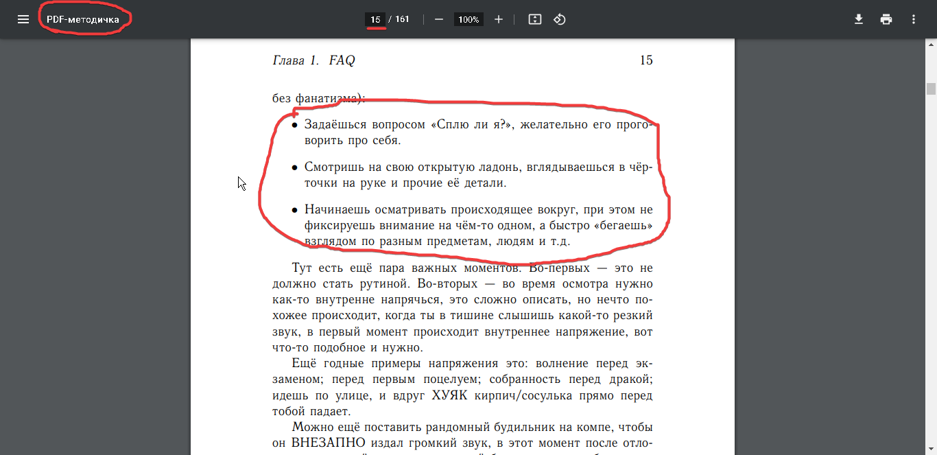 И ещё есть вопросик: у меня никогда не получался прямой метод просто потому, что везде про него написано как-то размыто и неточно. Вот у меня случился "провал сознания" на засыпании — и что дальше? Кто-то пишет, что нужно вернуться и уже просто заснуть, кто-то — что нужно как бы до конца постараться вникнуть в этот провал, а потом очнуться, и ты как бы прямо со старта сна будешь осознанный. Кто-то вообще пишет про фантомные раскачивания и что, типа, можно настолько раскачаться на засыпании, что в итоге выкатишься. В общем, не знаю. Как вы делаете прямые техники?