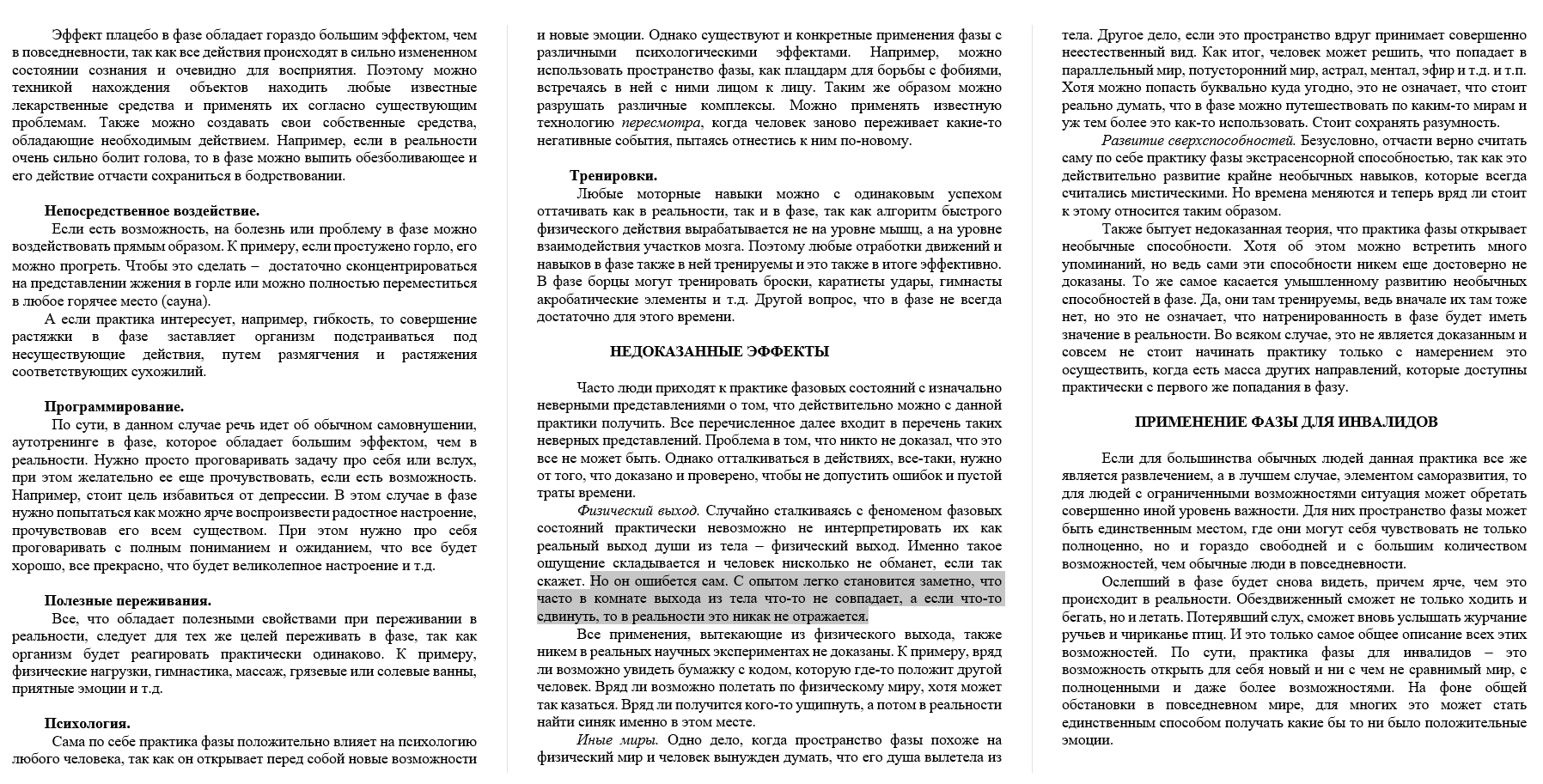Таким образом, новоиспечённый адепт имеет возможность познакомиться со всеми сторонами интересующего его явления, начиная с физиологии процесса и заканчивая практическими методами осуществления задуманного.