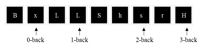 В нахваливаемой мной версии (single режим, звуковой) только буквы, и их произносишь вслух цепочками в зависимости от уровня. Хз, как лучше объяснить. Если n=1, значит "цепочка" букв из одной буквы. Произносишь только текущую букву и сверяешь с предыдущей (один (n) шаг назад), если совпали, то жмёшь кнопку, если нет, то не жмёшь. Если n=2, то произносишь предыдущую + текущую, сверяешь первую тобой произносимую с текущей, которую диктор произносит (то есть ты перед собой имеешь в начале цепочки букву, что была 2 шага назад и можешь её "прикладывать" к текущей, проверяя на совпадение). И так дальше.
