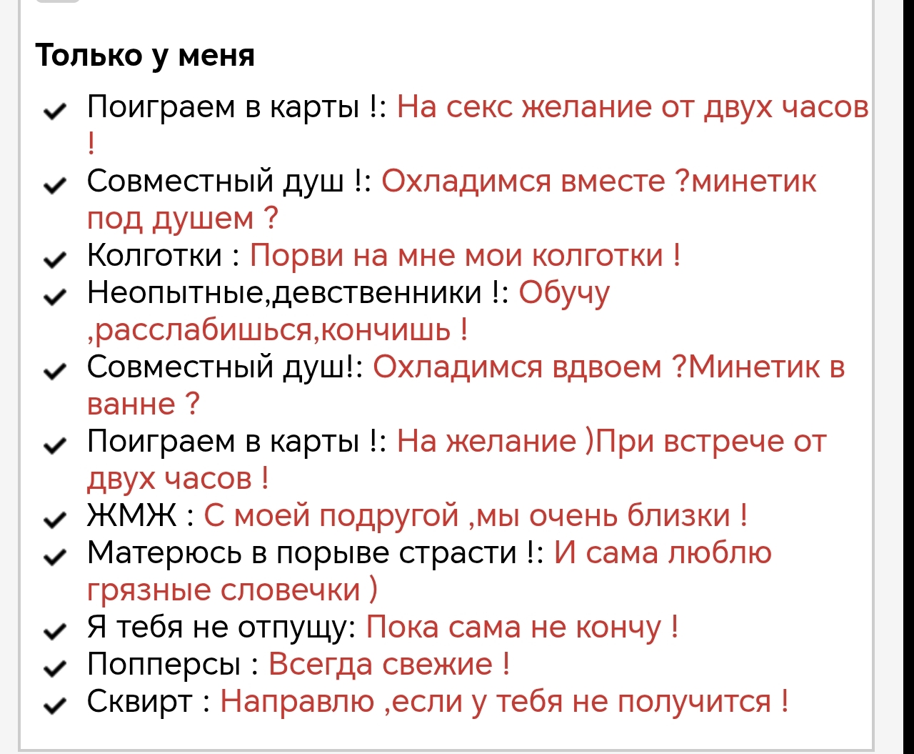>>10532891 Да я там ничего осбого и не выбирал. Отзыв уж хоть один надо. Я район Измайлово выбрал где буду возможно, от того такой эффект, сейчас без привяки ввел фильтры и норм нашло. Првда разбросало по городу. Но вот Катю сразу же нашло https://r.intimstory.lol/a790013.htm