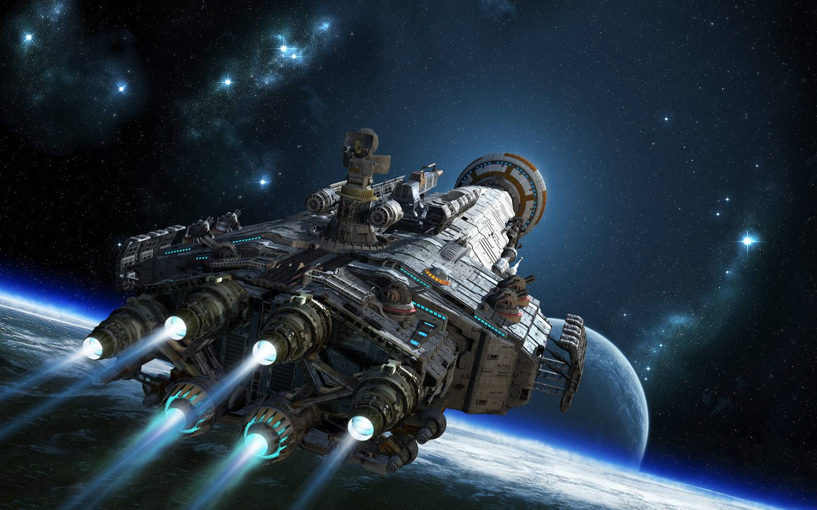 1. Звёздные врата. Устройство позволяющее мгновенно перемещаться между двумя точками пространства. Сами космические корабли (и любые другие перемещаемые объекты, которыми не обязательно должны быть кораблями) никакими специальными устройствами оборудованы быть не должны. Удобно, быстро, дёшево, позволяет перемещать огромные массивы грузов, но есть одно "но": чтобы построить врата в конечной точке, до неё сначала нужно добраться каким-то другим путём (в худшем случае — на релятивистских скоростях).