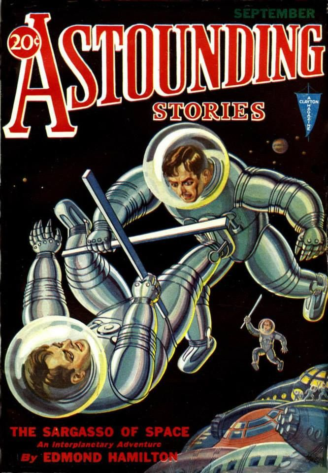 Как было дело? Я представляю себе это так. Суровая зима 1927 года. Эд Гамильтон, типичный 23-летний сыночка-корзиночка, сыч и видимо лиственник, живет с родителями в каких-то американских ебенях, где два главных технических чуда того времени - электрическая лампочка и говорящее радио. Эд любит прогуляться вечерком пешочком в центр своего мухостранска. Трещит мороз, Гамильтон идет по скользкой тропе, вокруг тьма, над ним переливаются яркие разноцветные звезды, а вдалеке тепло мерцают огни далекого человеческого жилья, такие же маленькие как и звезды. Руки мерзнут, ноги мерзнут, нос посинел уже, и начинает казаться, что до огней городка так же далеко как и до звезд. И тогда Эда посещает мысль, что если огни человеческого жилья похожи на далекие звезды, то и звезды похожи на далекие уличные фонари и освещенные окна, и может быть там, у чужих солнц тоже есть обитаемые миры, и кто живет там, как они выглядят, о чем они думают? А мороз все глубже забирает ему под одежду, зимние ночи тянутся бесконечно долго, и Эда посещает другая мысль - что будет, когда Солнце остынет? Мы-то наверное ничего не сможем поделать, но вот представим себе некую высокоразвитую цивилизацию, которая научилась подчинять себе материю, что будет делать она когда ее родительская звезда начнет остывать? Наверное, она подыщет себе новую, молодую и горячую звезду. Но если у этой новой звезды будет обитать своя цивилизация? Скорее всего обреченная раса не остановится ни перед чем. Тогда мирным цивилизациям Галактики понадобится что-то вроде межзвездной полиции чтобы пресекать подобный галактический бандитизм. И именно этот сюжет - обреченная цивилизация ради собственного спасения собирается уничтожить земляшек или вообще распидорасить всю галактику, но в последний момент земляне и их союзники мужественно превозмогают, причем для захватчиков обычно это заканчивается тотальным геноцидом - Гамильтон нещадно будет эксплуатировать до середины 1930-х.