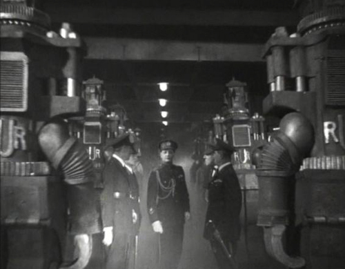 Во-первых, у Гамильтона появляется привычный уже нам звездолет в форме некоего продолговатого веретенообразного или рыбообразного тела. Корабль имеет сверху что-то вроде боевой рубки, "внизу" же расположен двигатель (в тексте обычно генератор), производящий движение по средствам генерации неких эфирных колебаний. Первая модель звездолета (1927) летала со скоростью света, но уже в 1929г корабли развивают тысячи световых скоростей в минуту, однако никаких релятивистских эффектов не наблюдается. Вообще Гамильтон описывает свои корабли крайне скупо, в отличии от других, поэтому каждый волен домысливать их в силу своего воображения. И наверное по этому же Гамильтон и сегодня выглядит "современнее" своих современников. На кораблях есть пост управления, оборудованный неким дросселем для регулировки частоты генераторов, рычагами, свитчами и циферблатами. Также на первых моделях были голографические экраны, но потом их зачем то убрали. Зато появился штурвал и проекционный экран из полированного металла, на который неведомо как проецируется тактическая обстановка. Таких экранов вы видели мильён в кинофантастике. В 1929 же звездолеты обрели цветные силовые лучи, но принцип их работы неизвестен. Любопытно, что бойцы межзвездного патруля не имели личного оружия, в то время как злобные алиены с самого начала носили в своих лапцах разные ручные вундервафли! В 1931г Эдмонд одел своих астронавтов в классический скафандр со сферическим стеклянным шлемом, и выпустил их в открытый космос, где они начали ебашить друг друга железными дрынами, тогда же у алиенов появился Световой Меч!