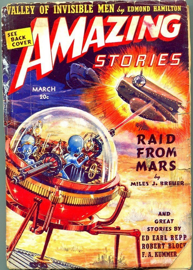 Казалось бы, эпоха тебе бесценный опыт дала, вестерны пиши - не хочу, хочу жрать говно марсианских принцесс. И это для меня настоящая загадка. 1910-е эпоха расцвета вестернов, от которых ломятся специализированные журналы. Почему он стал писать свой вестерн в марсианских декорациях? Непостижимо. А между тем его Барсумиада произвела эффект разорвавшейся идеологической бомбы. С этого момента Марс перестал быть квазиунофантазией высоколобых интеллектуалов-ботаников, отныне на Марс "сбегали" в своей фантазии тысячи тысяч подростков по всему миру, и с этого времени рождение приключенческой космической фантастики стало лишь делом времени.