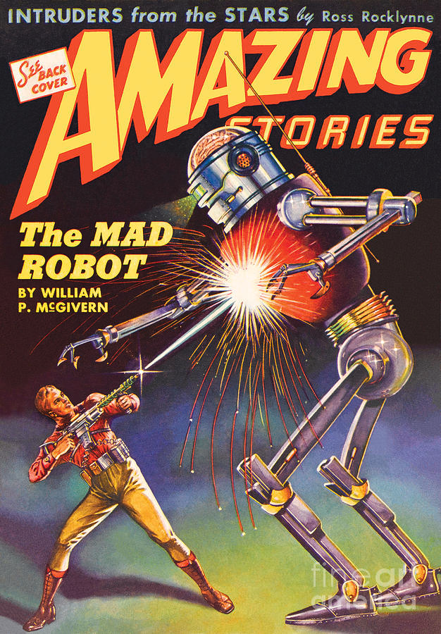Тем временем Гернсбек продолжал просвещать и изобретать разные электрические девайсы, не без успеха, однако мы его ценим прежде всего за изобретения в области лингвистики. Именно он подарил нам понятие Science Fiction (1915г) и например Television (1909г). Также он и сам немного пописывал, но к с частью немного. Всё это было очень наивно и нечитабельно по нынешним временам, разве что рассказ "Смертельный разряд" (1929), который как бы предшествует эпохе ироничной фантастики уровня Шекли и Боба Шоу.