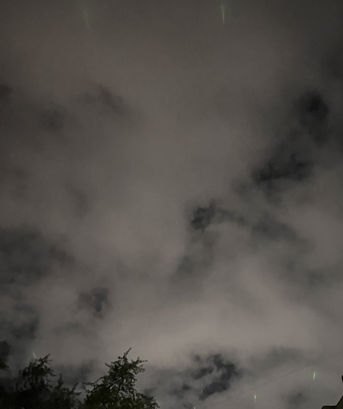 Сап двач. Долго пытался понять что это. Вообщем стори, вышел ближе к 12 ночи прогуляться, чет дернуло меня лечь на качель ватрушку и посмотреть на небо (живу в этом дворе несколько лет но решил этим заняться впервые) и увидел зеленые тонкие длинные объекты, сначала я подумал это какое то отражение, потом понял что это именно объект, потом увидел что их несколько штук, дальше осознал что они образуют ровный круг. Начал все это дело фоткать и снимать на видео, как через где то минуту они синхронно двинулись и исчезли, я обошел дом и ничего в небе не обнаружил, чистое небо.