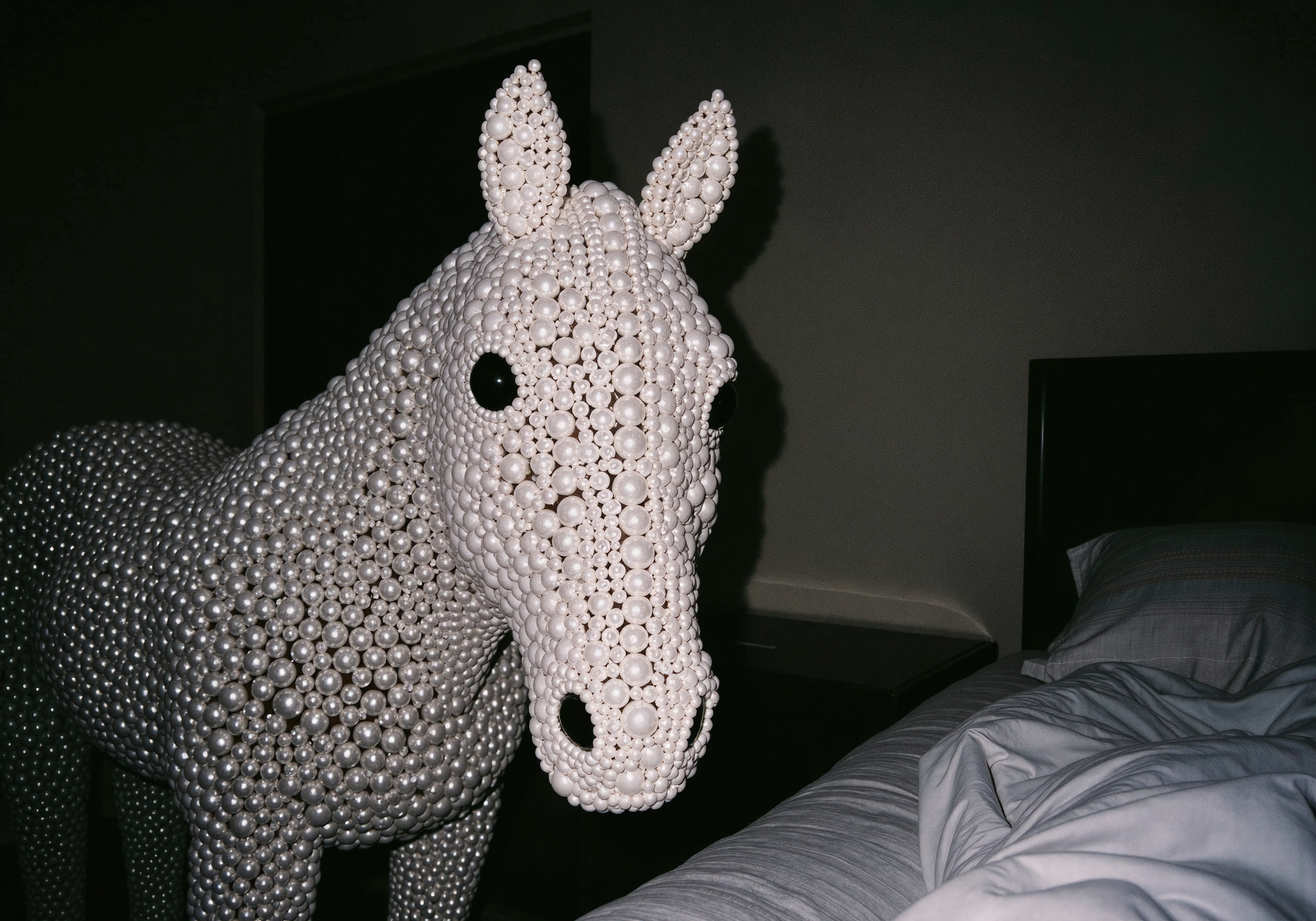 Мне довольно редко снится моя комната, да и в целом настолько темные локации, но тут я проснулся в ней посреди ночи и увидел стоящую перед кроватью здоровую статую лошади из чего-то вроде белого жемчуга разного, но крупного размера. Решил просто отодвинуть её, отвернуть от себя, и дальше продолжить спать. Отодвинул, лег, закрыл глаза... Что-то не то. Открыл - снова стоит рядом и смотрит на меня. Думаю, наверное, приснилось, как я ее двигал, а сам просто уснул. Отодвинул снова, лег, и это всё повторилось Я её так и двигал дальше, пока не поймал непосредственно на движении, и дальше она уже не скрывалась, двигалась постоянно, как обычное животное, разве что совершенно беззвучное, и спокойно смотрящее прямо мне в лицо немигающим черным жемчугом. Пытался отодвинуть её морду от себя, так она не давала, напрягала шею. Я уже совсем потерял сонливость, начал ходить по комнате, думать, куда её деть, к она просто ходила за мной. Дошел до спящего на тумбе кота - думаю, вот он-то нашипит на лошадь и прогонит её, но нет - он проснулся, спокойно посмотрел на неё, не обратил внимания и продолжил валяться. Где-то тут я и проснулся.