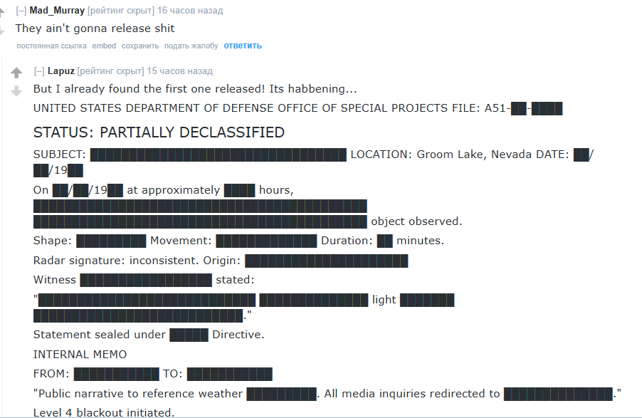 >этот ИТТ тред реально единственный оплот материалистического подхода к проблеме НЛО в рунете