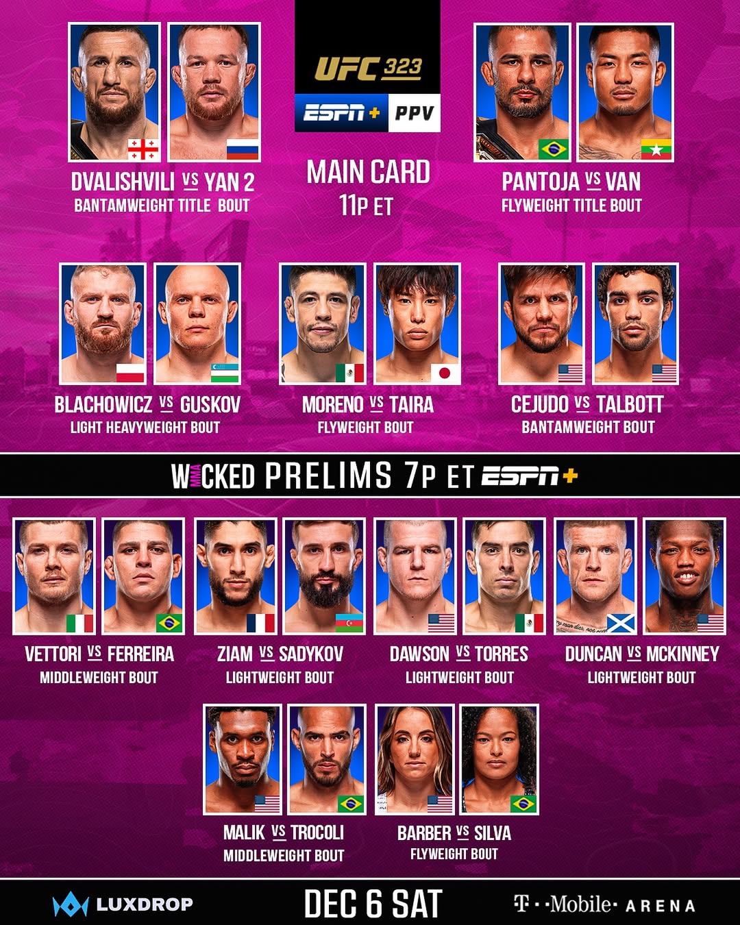 Карликовый мейн ивент стартует в выходные. Петр Ян даст гари, либо гарь вместе с пердежом Двалишвили залетит ему прямо в обе ноздри. Сехудо решил позориться до конца, видимо все таки бабки нужны. На остальных же принципиально похуй. Петуха вперед!