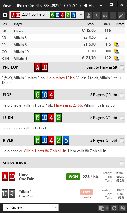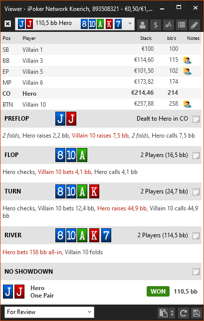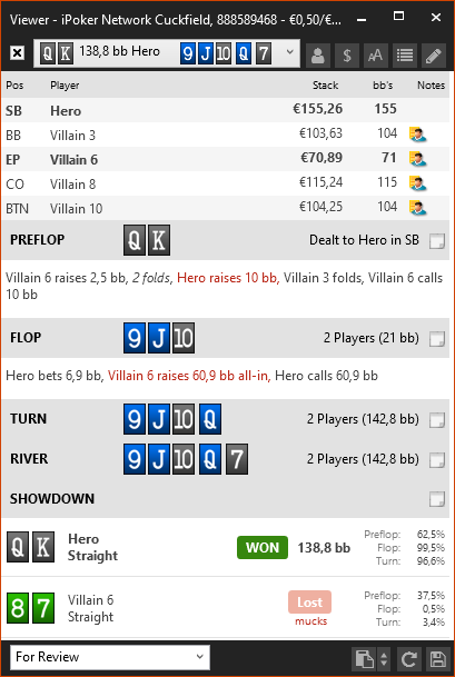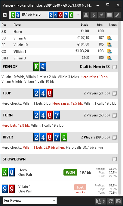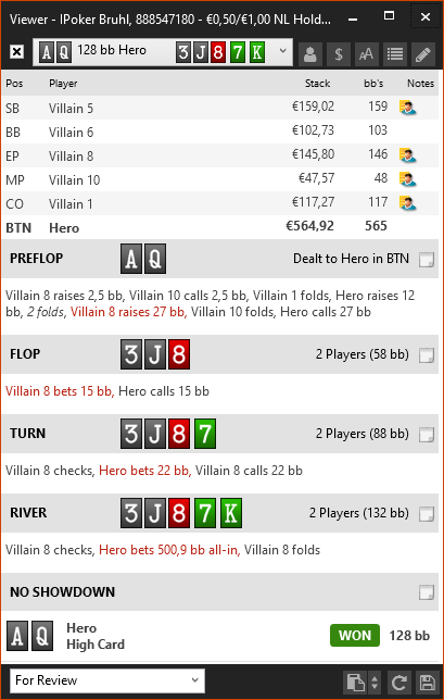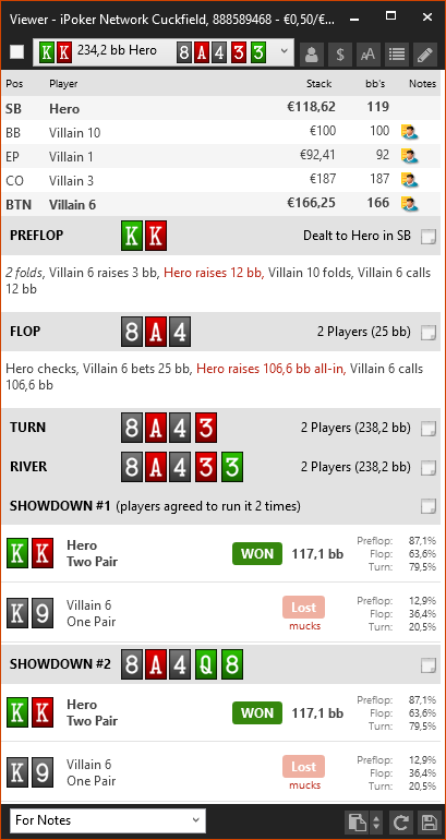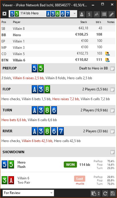 Вот за что я постеров не люблю изолировать, так это то что они за этот 1bb оставленный вне очереди удавятся. Начинают какую-то дичь творить постоянно и сиди гадай, зашёл он с 53o или просто не хочет отдавать свой блайнд. И почему в HM3 не показывается постер в view? Пришлось форумную версию делать...