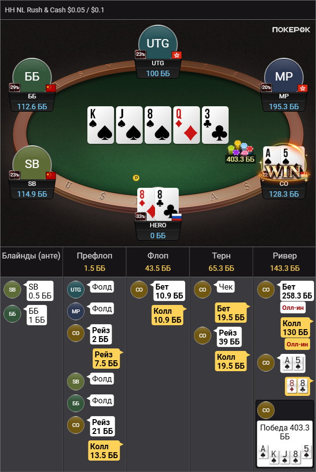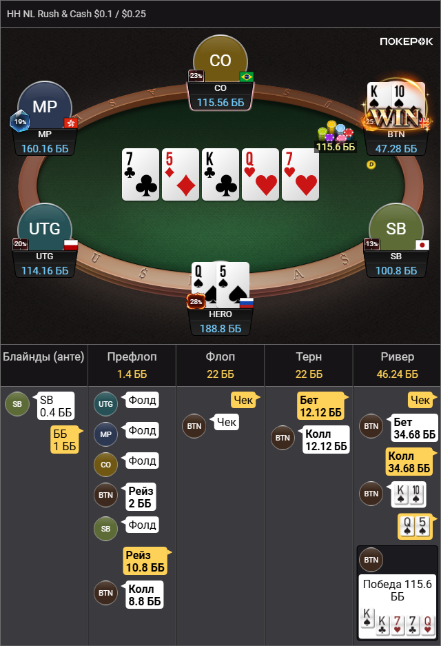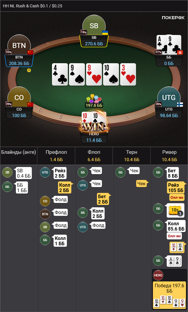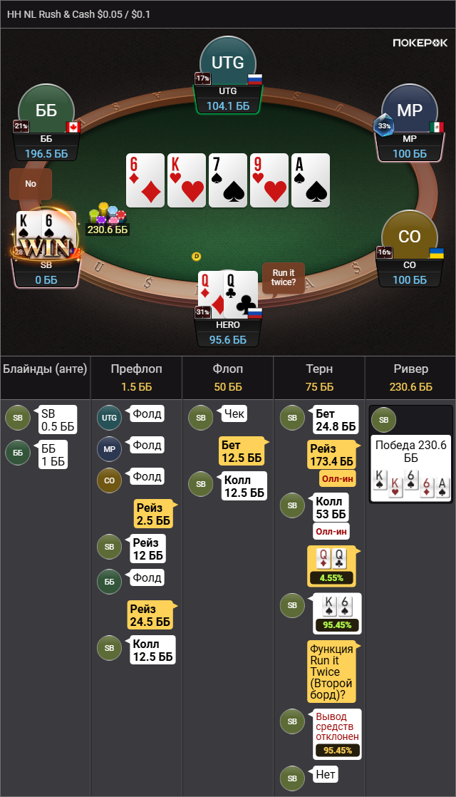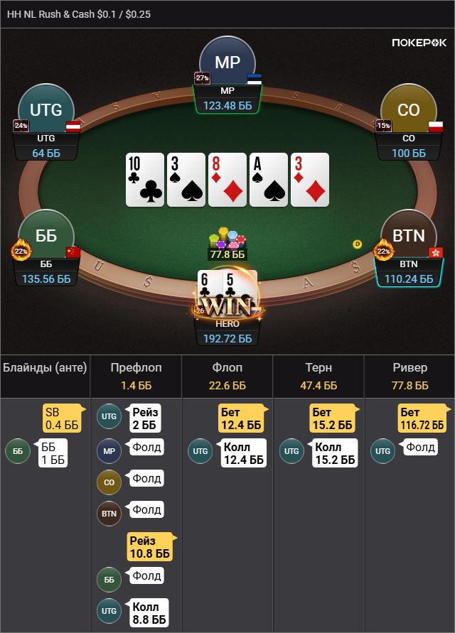 >так что колл вроде натягивается Да там пиздец сессия была, 500 рук тупа каждый банк проебал, это для раша немного, но этого отрезка хватило чтобы зашугался и выкинул АКо в ужасе.