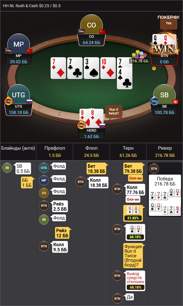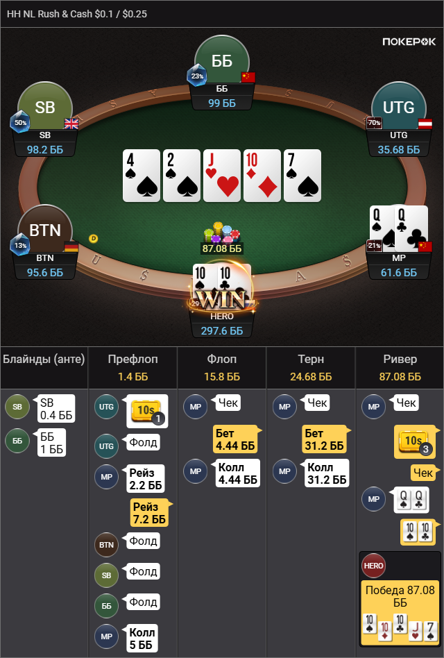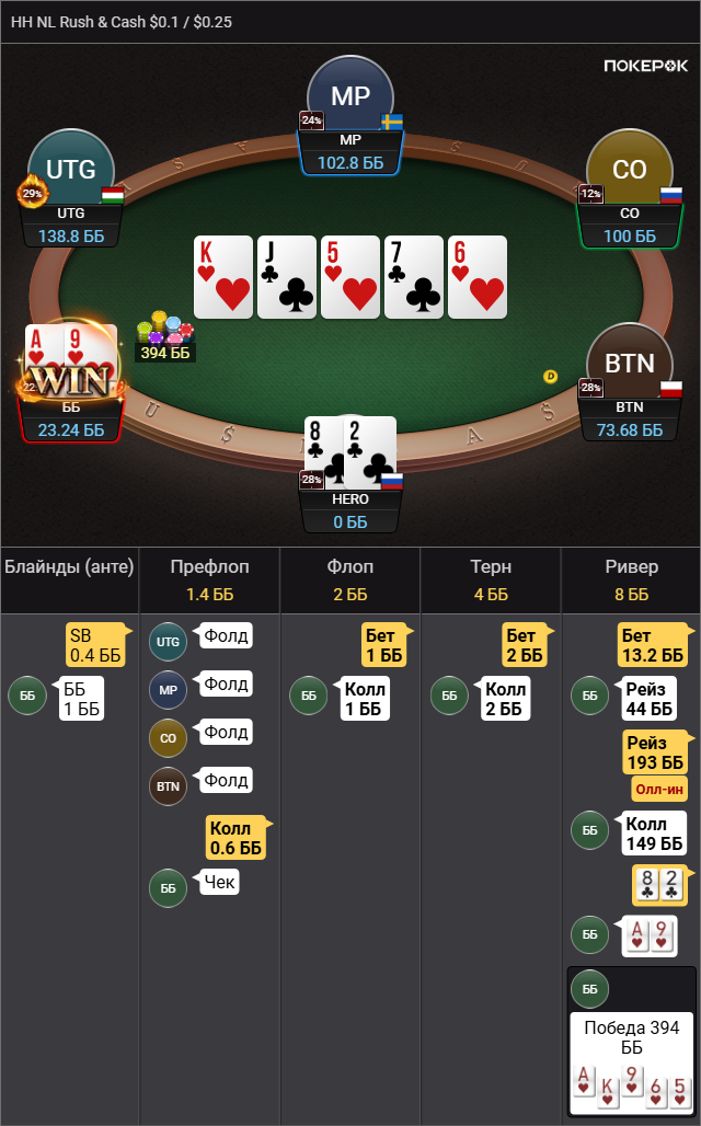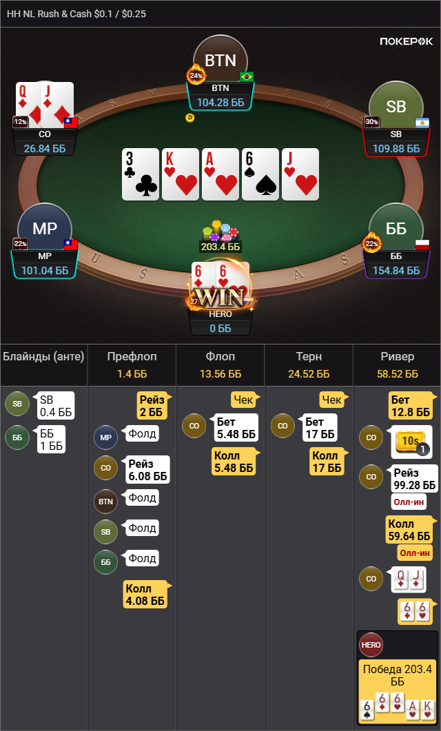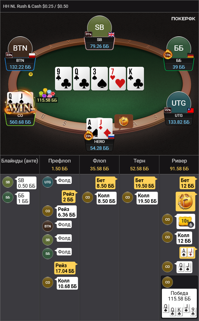 >так что колл вроде натягивается Да там пиздец сессия была, 500 рук тупа каждый банк проебал, это для раша немного, но этого отрезка хватило чтобы зашугался и выкинул АКо в ужасе.