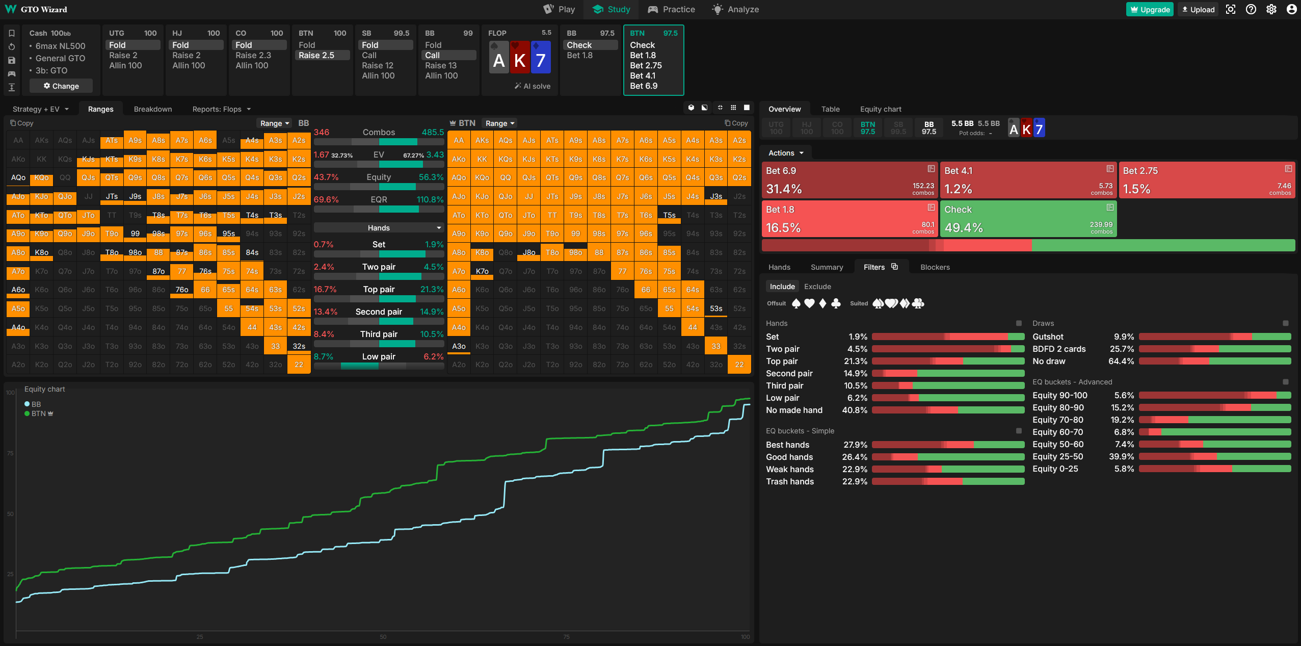 >>3249234 Ну, я просто задал дефолтные диапазоны bvb, а у тебя какая-то кривая каша. Могу задать BB vs BU, но тогда это донки будут, которые скорее всего не посчитаются на таком флопе... Или задавать кривые диапазоны? Я хз что тебе надо...