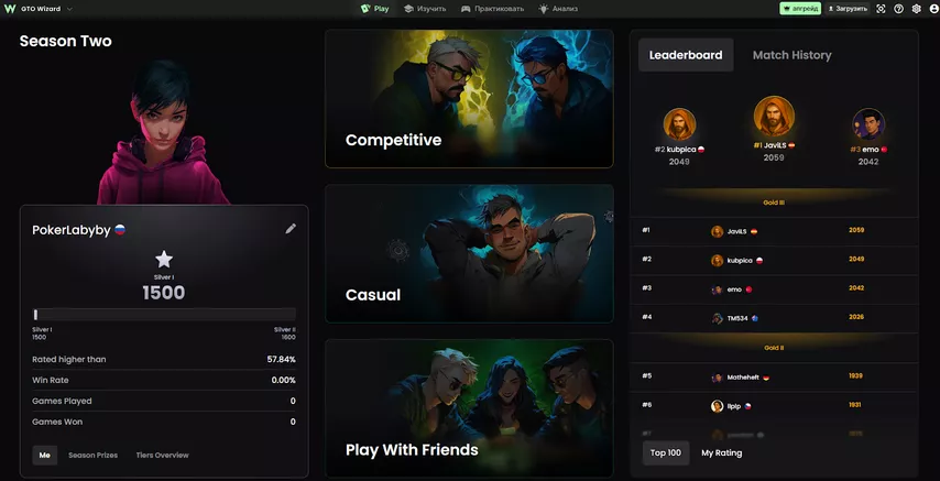 - Что такое PokerArena PokerArena — новая игра на платформе GTO Wizard. Это хедз-апы в формате гипер-турбо турниров, где за победу начисляют не деньги или условные фишки, а очки в рейтинг. При этом каждая раздача автоматически проверяется на соответствие GTO, что также влияет на положение в лидерборде.