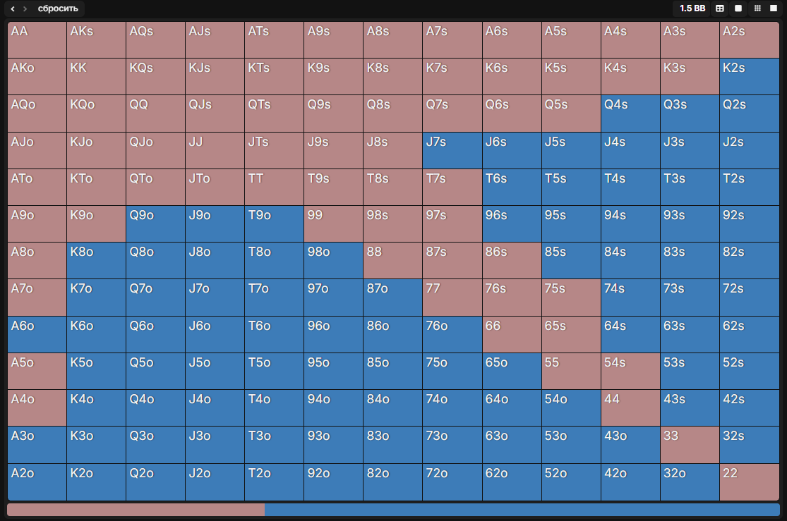 >>3250881 Может у него страта такая. Я какого-то рега видел на ютубе, он тоже примерно такие сайзы юзает, чтобы все тащили мусор, а потом выбивает. Но у него и 3бет супер широкий.