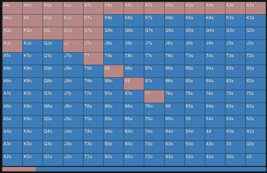 >>3260796 короче если кто будет задаваться таким же вопросом - вам нужно создать в папке монкера следующие папки /ranges/8max/10bb ну и в 8max все что нужно видимо. пока только 10бб загрузил