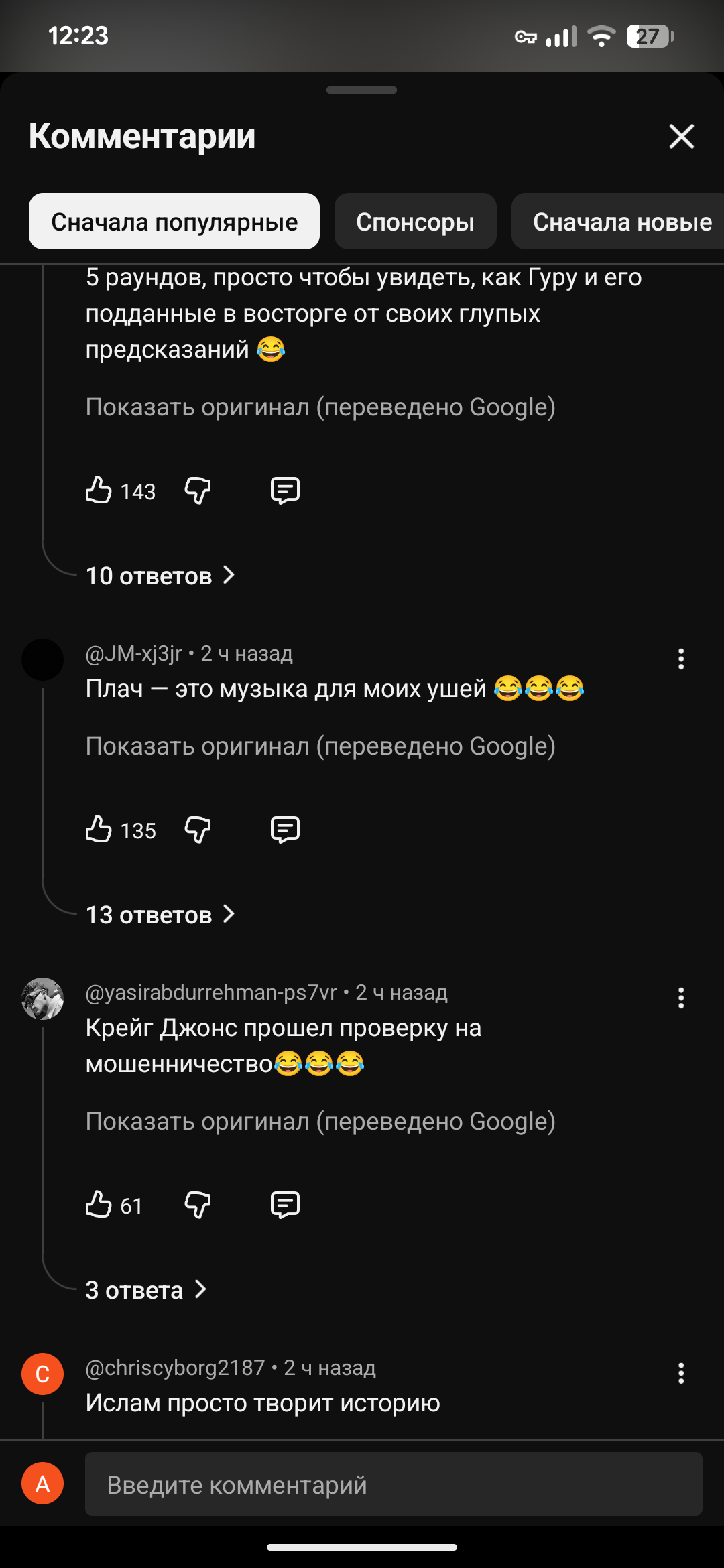 >>3260227 Я открыл первый ролик. Это комментарии самые первые под видео, я не листал просто подряд скринил. Зачем ты выдумал брат что англоязычные не рады победе Ислама