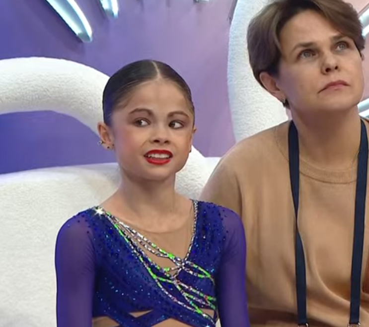 Милана Александровна ПУШКОВА швырнула чехлы под ноги тренеру, ей пришлось нагибаться, поднимать. 2a< 3s<< в подпрыжку, одноножный stsq уровня юный фигурист с подпрыжкой в шпагат 2z2r не успела? оставила приятное впечатление.