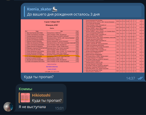 Аделина Ирековна КАМАЛОВА Республика Татарстан, РСШОР по ФККиШТ 3z3t< закрутило в какую-то кракозябру, вытащила >прямо не дотолкнулась и из-за этого вкрутилась в лёд, будто пробурить его собралась 2a с шарлотты 3r - за такое и q бригада поставить может, но не я (таки нашли q, что за звери там сидят?) stsq1