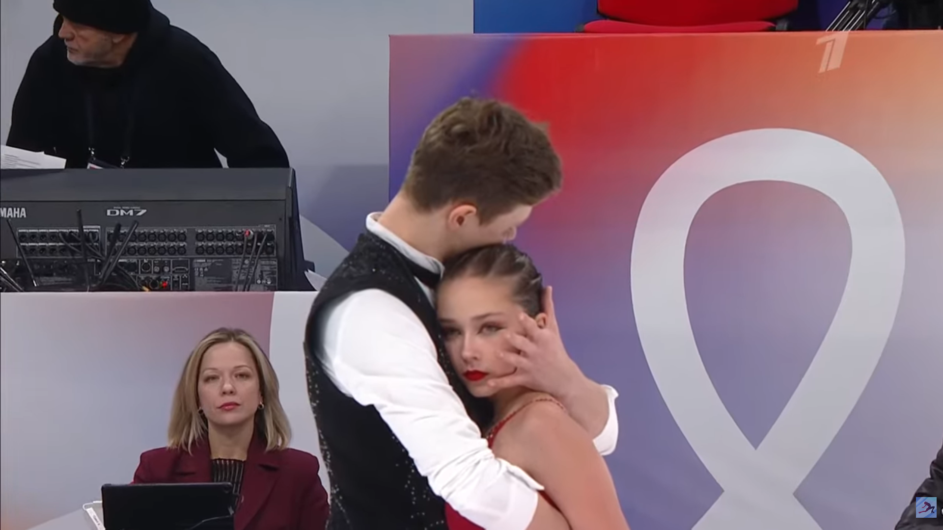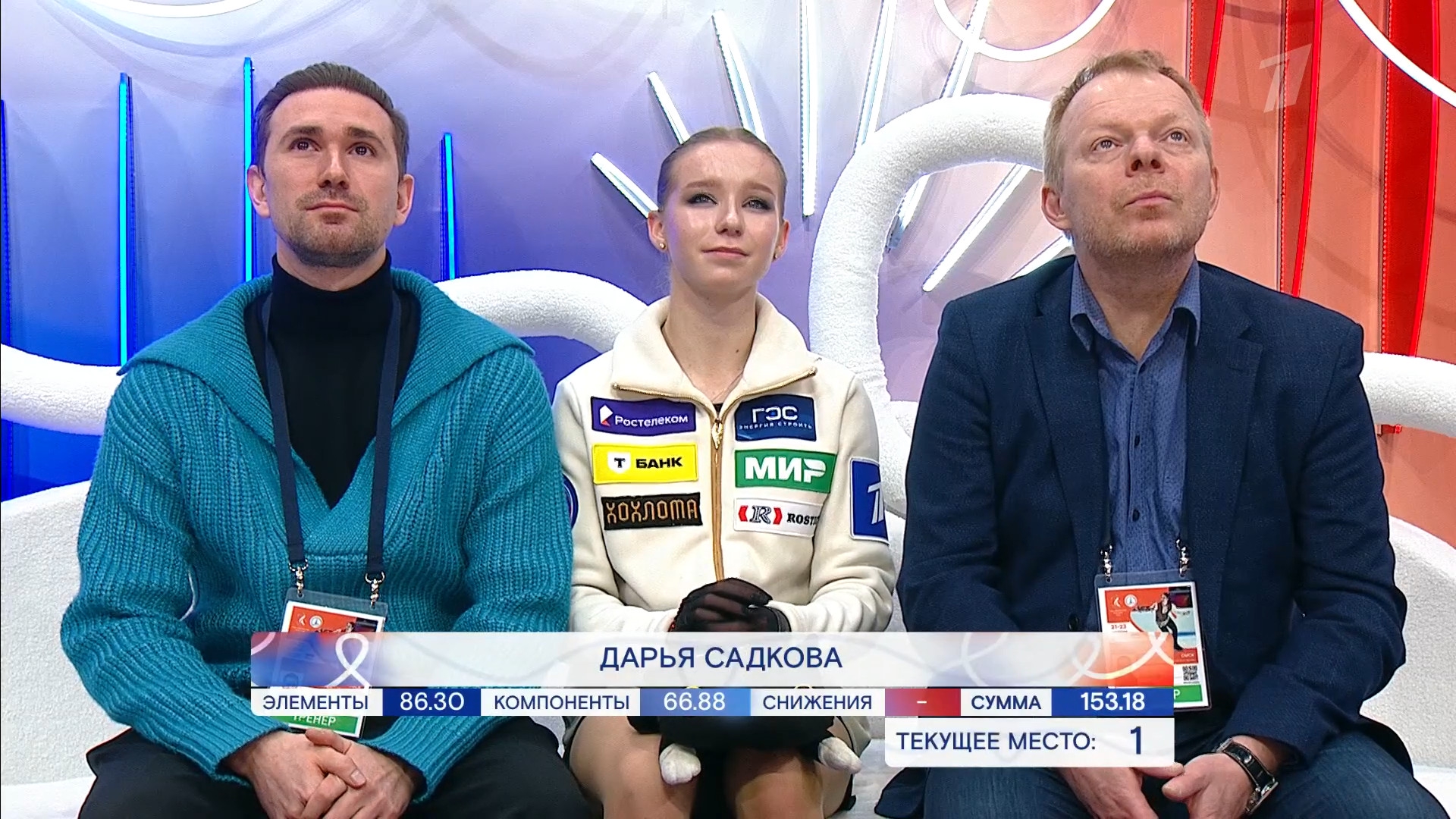 Дарья Денисовна ЦАРЕГОРОДЦЕВА с Самодуровой и в куртке 1 канала шуршит рёбрами на весь каток 3a<<? fall 3z3t в твизлы держась рукой за конёк 3r в хв chsq1 3s 3z! тройка (немой вскрик на лице в этот момент) 2a2a 3f3t ho