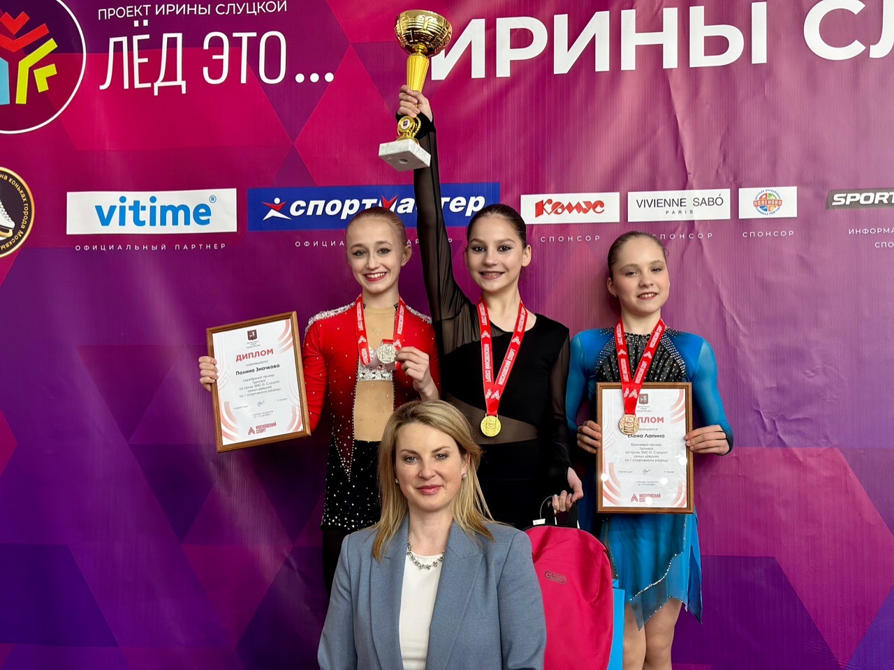 Елизавета Александровна КРЫЛОВА с Ефимовой и хореографом, 12 лет (2013-05-08) СПб ГБУ ДО СШОР "Звёздный лёд" мало гения 3z 3f 3r 2a с дырга в хв chsq1 3z3t 3f2a2t (R) 3s2t достойная конкурентка Бершадской и Царегородцевой