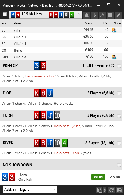Тестирую новую линию с блефами против фишей в мультипоте. Как-то раньше стеснялся в мультипоте сильно отмораживаться. Теперь вот больше стараюсь от структуры доски отталкиваться.