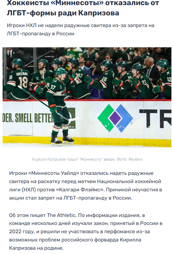 >>3272553 Не понимаю как это делает их менее помойными. Кубок из свиньи человека не делает. >Бобровский в интервью говорил, что Флорида - идеальное место для игры в хоккей. Про то, что подоходного налога нету он, разумеется, тактично промолчал. Ничего, и этого для них кончается..