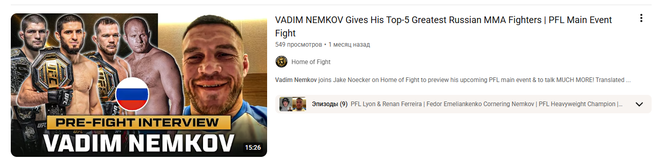 Интервью с Арманчиком собирает 400к за день интервью с чмадимом чмомковым собирает 500 просмотров за месяц))) Конченные твари из унтермельяненко немужчина тим своей отвратительной антихаризмой собираются убить все промоушены в которых подписаны, неудивительно что кроме кфс в мма смотреть нехуй