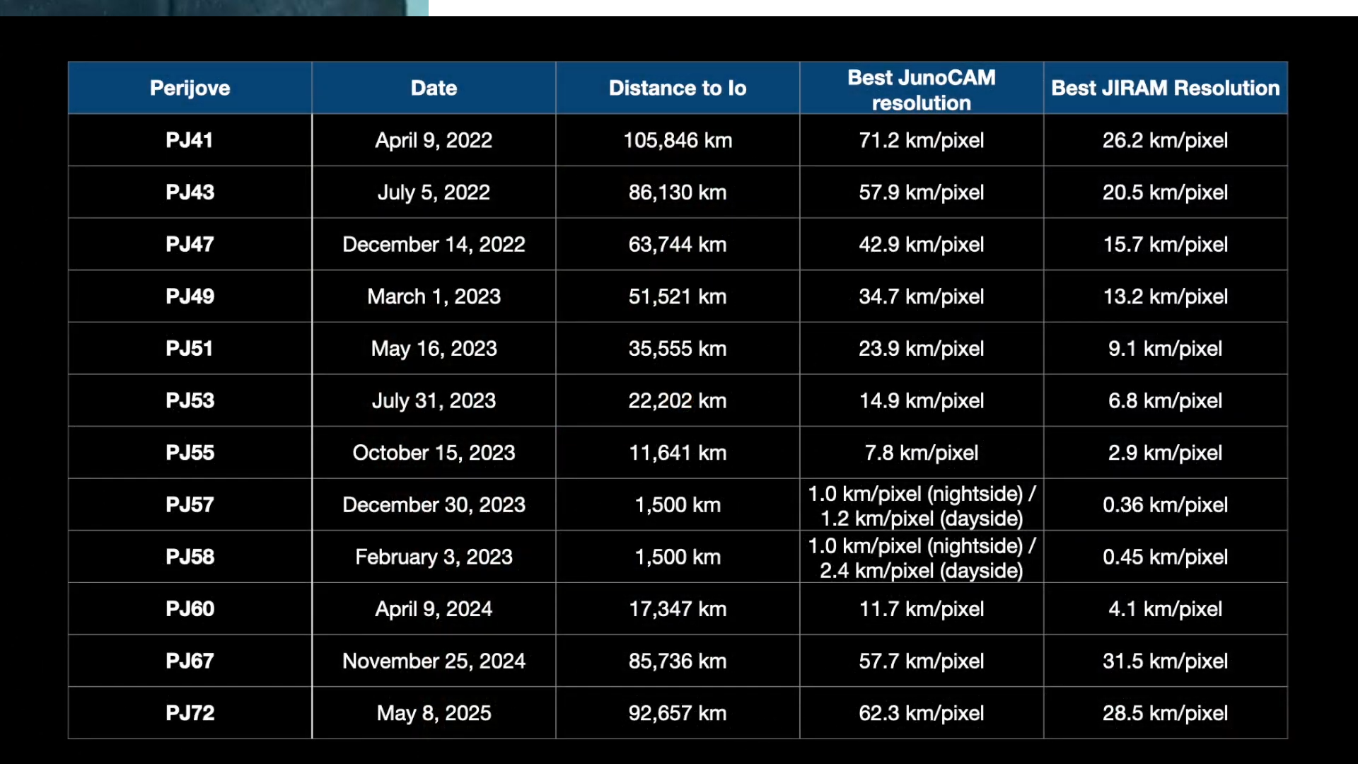 Расписание пролётов Джуно мимо спутников Юпитера в случае утверждения расширенной миссии. 11 пролётов будут сфокусированы на Ио, начнутся с 2022 года. На аппарате есть инфракрасные камеры, которые смогут увидеть все извержения в их блеске, пролёты будут над полярными регионами, которые слабо изучены. Ультрафиолетовые камеры могут изучать атмосферу на ночной стороне Ио, дымку и плюмы извержений на лимбе. Различные магнетометры и детекторы плазмы-частиц охуеют конечно при пролёте через тор.
