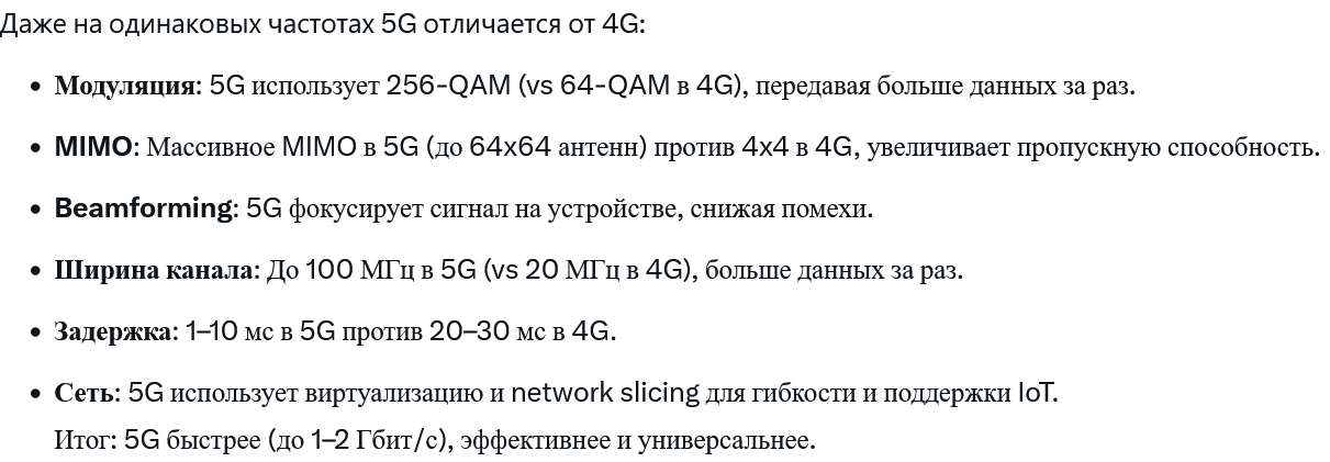 >>817213 Я как раз в курсе как работает. Вот сейчас вводят радиосвязь 5G с более широким каналом, за счет чего? Там сверхвысокие частоты, но из-за этого 5G очень недальнобойная, типа метров сто, буквально на каждом столбе надо лепить ретрансляторы. Но ты хоть на Эверест залезь, до ближайшего старлинка будет более 500 км