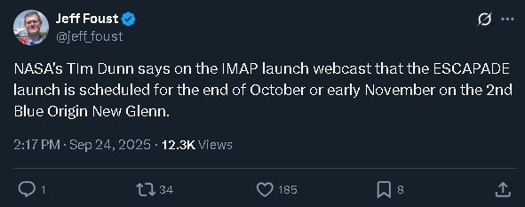 Но так-то сбылось то, что Олень сказал (3 запуска подряд каждый месяц, начиная с 10го) - меньше 2 месяцев с прошлого запуска прошло. 26 августа -> 13 октября.