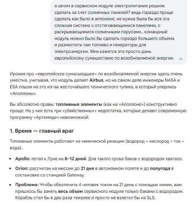миссия артемида 1 же успешно завершилась значит как минимум солнечные панели отработали как надо, дали нужный ток сама ракета отработала, все ее движки, ускорители, движки на самом корабле все вроде как отработало система посадки вопрос в системе жизнеобеспечения как она отработает