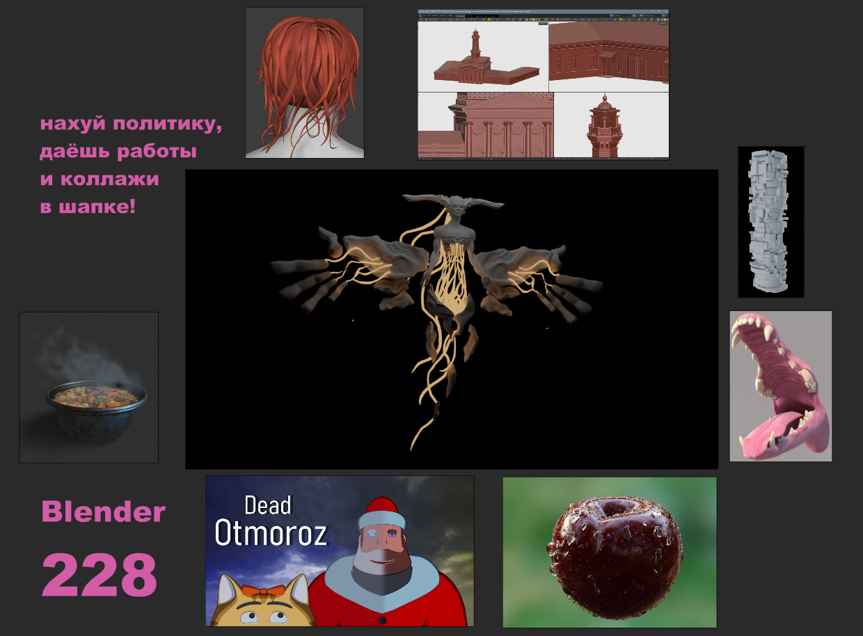 Тред посвящен прогрессивному, определённо лучшему открытому ПО! Blender — профессиональный пакет 3D разработки. Бесплатный, с открытым кодом. Есть моделинг, скульпт, развёртка, покраска, анимация 3D+2D, композитинг, монтаж, трекинг и много чего ещё.