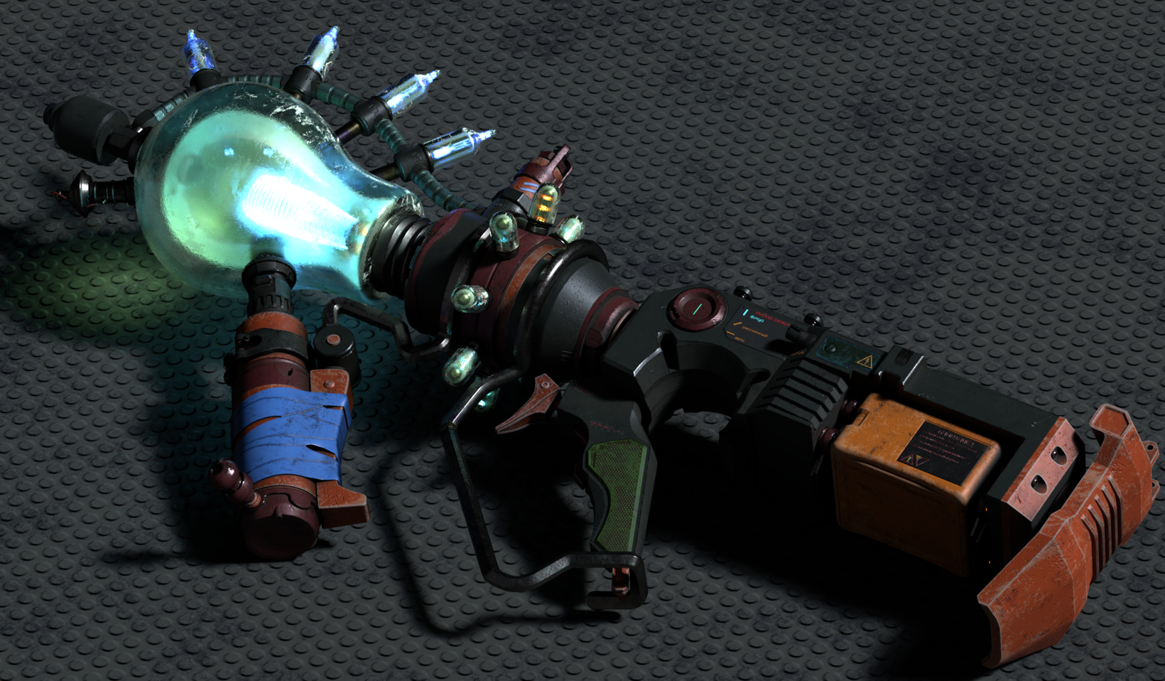 >>293866 Черная пушка лежит на темно сером. Плохо видно. Сделай светлее эту рифленную кружками поверхность. В глубоких тенях плохо видно детали оружия. А так норм лампочкомет. Если ещё и в полете светится, то в темных коридорах с боковыми проемами будет красиво смотрется игра теней. Типа как трассирующая пуля.
