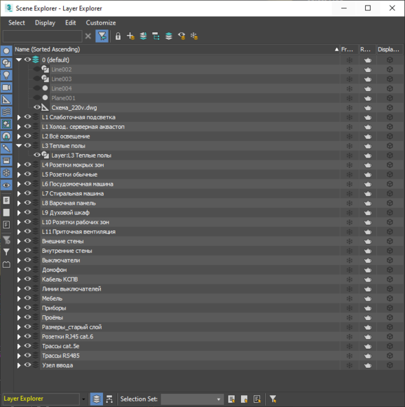 Если удалить родительский объект (Схема_220v.dwg), то удаляется только он, а все дочерние автокадовские слои остаются.Если попытаться удалить дочерние ноды - ни при нажатии на Delete через ПКМ, ни при нажатии на Del, ничего со ними не происходит.