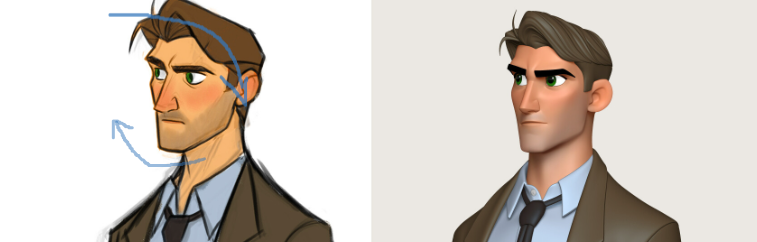 >жесткие черные тени дают максимальный объем Я хочу утро(ранний день) получить свеженькое, логично что солнце низко стоит и прожектором ебашит в лицо (Key light), рождая +- жесткие тени...