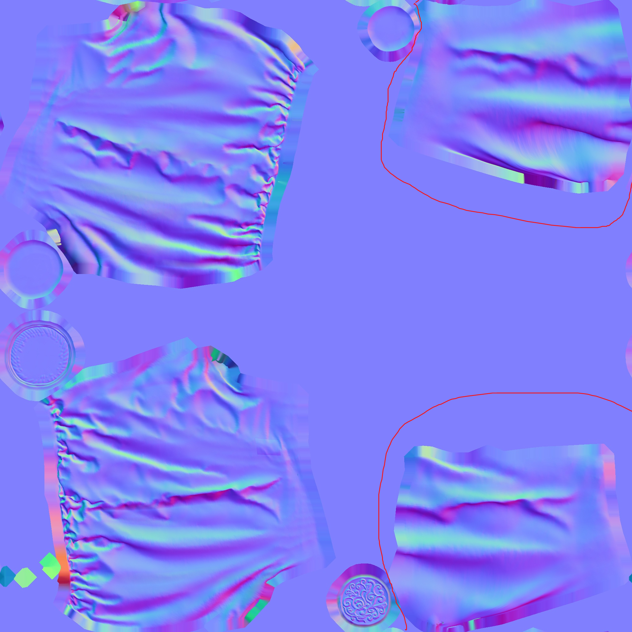 Ну и при кривом разрезе может часть текстуры наложиться на другую, будешь при мазке в одном месте получать мазок и в другом >твой 2 пик типо никак не спрятать вообще? Хз, такой задачи не стоит, крутилка будет на удалении, и вообще это мидполька авторемешнутая под крутилку. В твоей гипотетической ситуации "игровой" будет и ремеш сетки аккуратней с учетом следуюшего ЮВ-этапа, и карта нормалей, которую ты сможешь подтереть смузом в любом граф редакторе.