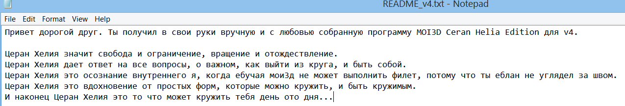 >>295936 > Я взял его файл Это буквально деление самого себя на ноль. Я мало того, что сохранил пространство для редактирования, ты, взяв чужой файл, этим пространством смог самостоятельно воспользоваться, так еще и критикуешь меня за это. Лихо ты придумал. Настоящий пиарщик, жиды благоговеют. Но к сожалению я фашист, а не жид. Не сработало.