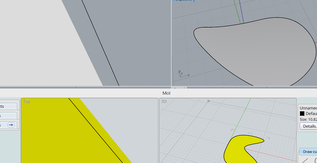 >Вариант 0 Я не взлюбил манипуляции с CPlanами\РПлоскостями в рино когда пробовал их ротировать, то камера оставалась вращаться вокруг мировой Z, а отвязывать её и потом все время корректировать через альф+шифт. Можно как-то камеру к Z Ц-плана привязать? А в мойке история не дружит с вращением С-плана и вращением объекта, анду\редушишь а прога скипает ей неугодное. Так что баюс пока их. >Вариант 2 Вот до него я допердолился таки, но он ограниченный сильно, нужно ультимативное оружие. >Вариант 3 Няшный. Я бугуртил во время поиска за что снапнуться, почему прога не запомнила эндпоинты кривых...Вот оно че... >Построение по трем точкам Вообще любимая надпись в рино, наряду с тангентами.